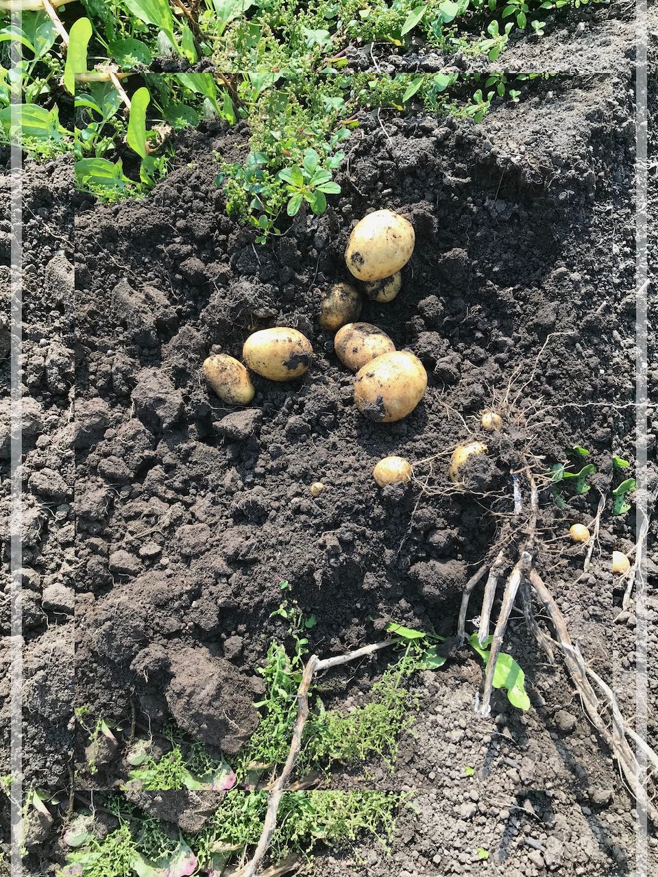 Voordat ik afreis naar mijn artist in residence bij Station Ellecom, een halte voor kunst en natuur, breng ik vandaag nog een bezoek aan de moestuin in Haarzuilens. Daar wacht een oogst op mij. De aardappelen mogen uit de grond.