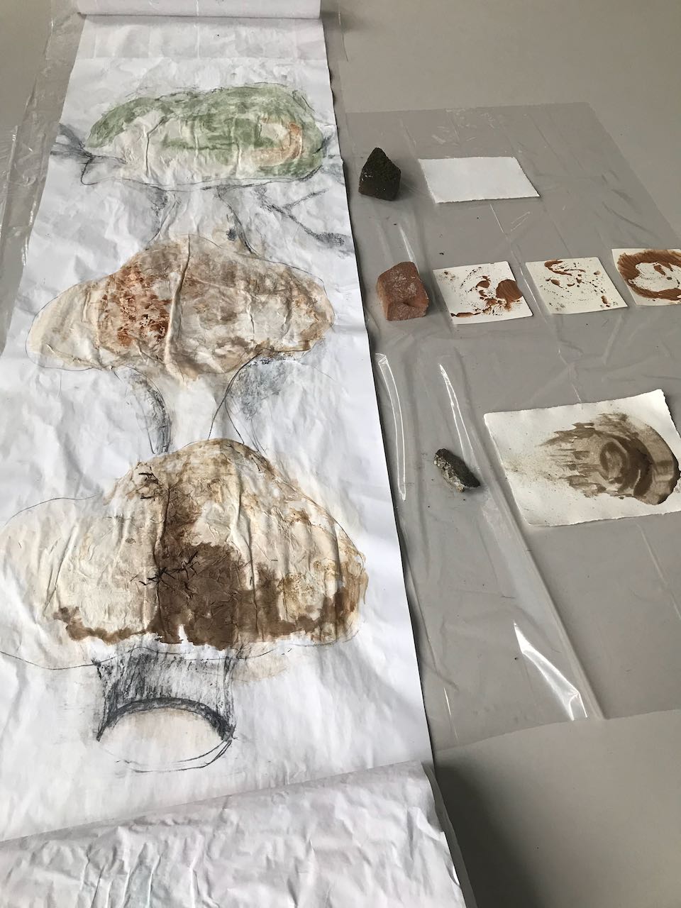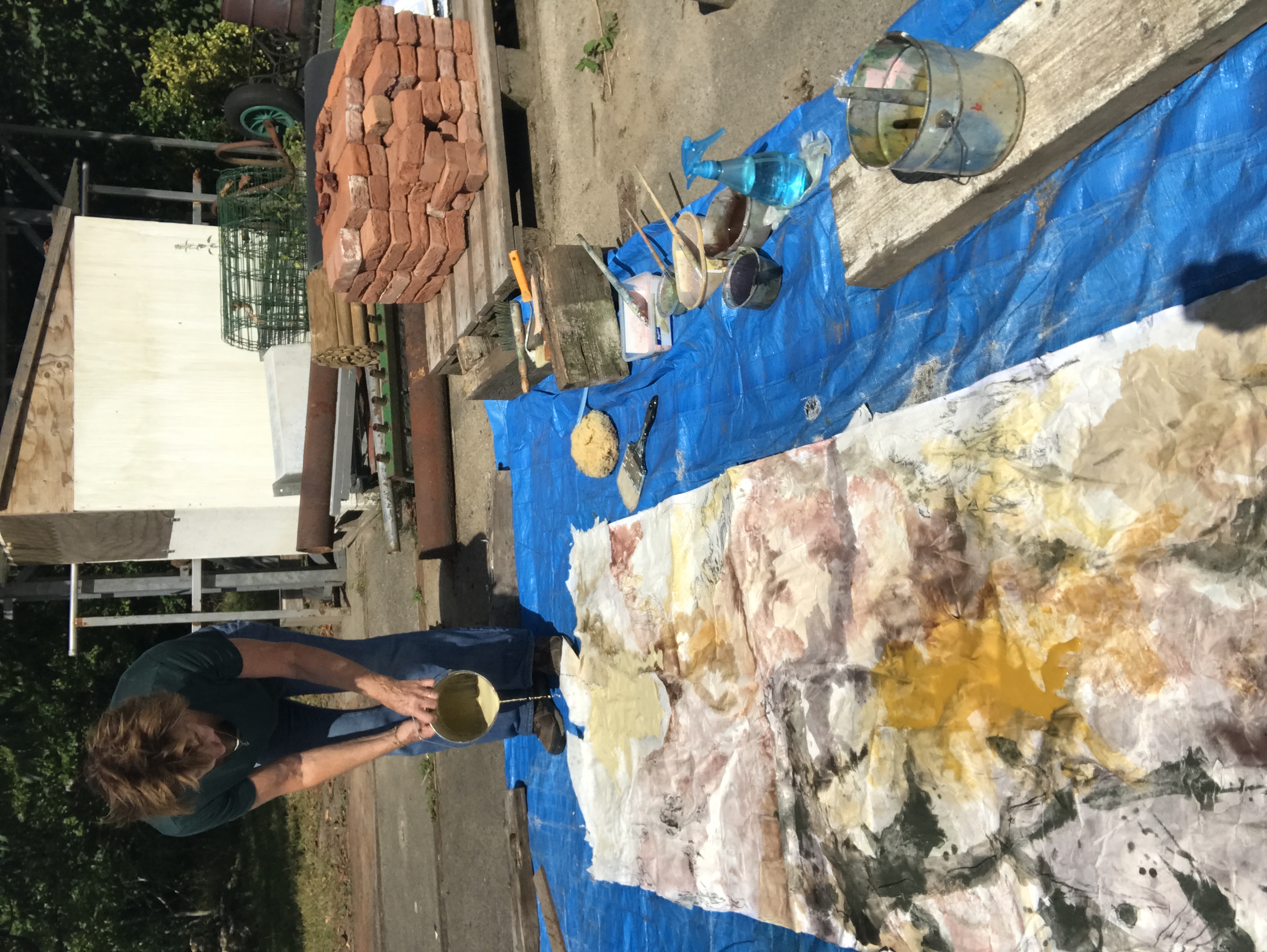 Daarnaast heb ik tijdens de residentie geprobeerd te werken met natuurlijke pigmenten. Het schilderen met aarde uit Puglia,de Veluwezoom en de tuin van Station Ellecom, groene verfstof van bijvoet en spirulina gaf een nieuw kleurenpalet en opent nieuwe mogelijkheden. Er valt nog veel te ontdekken en te leren.
