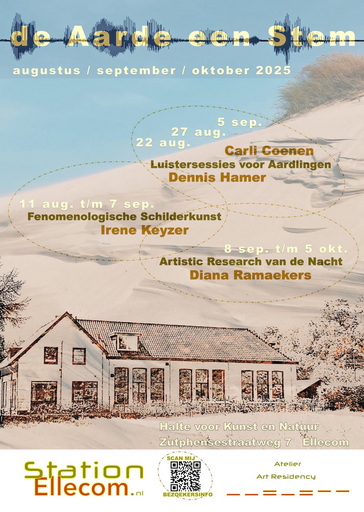Van 11 augustus t/m 7 september 2025 was ik artist in residence bij Station Ellecom op de Veluwezoom, waar ik werkte aan een artistiek en ecologisch onderzoeksproject.
