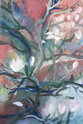 Afbeelding schilderij ‘De magnolia is rood’ ( acryl pastel op doek - 90 x 130 cm - )